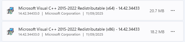 If the issue persists, please confirm that you have installed the 2015 or latest version of the Microsoft Visual C++ Redistributable.