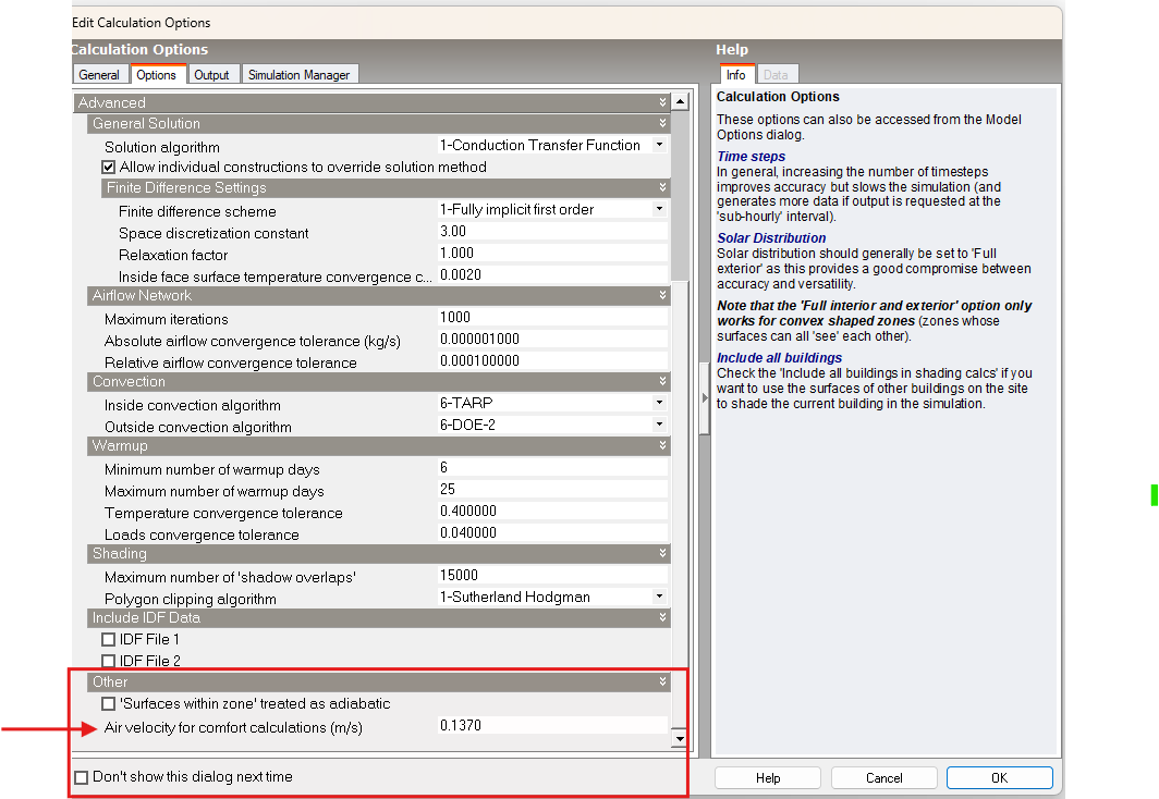 The air velocity for comfort calculations is now defined under the Activity tab.
