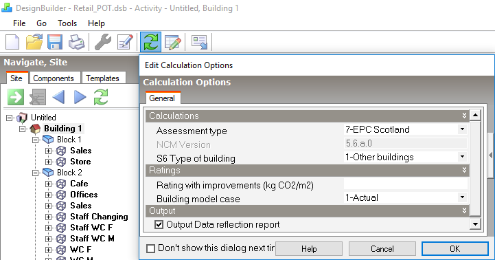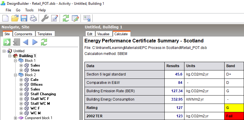 5. Switch the model case in the calculate window to POTENTIAL and run the model again, the EPC now shows two flags showing both Actual and Potential ratings the same.