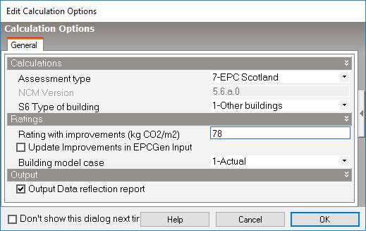 11. For DSM calculations tick the box 'Update Improvements in EPCGen input': this will amend the EPC input file rather than rerunning the calculation.