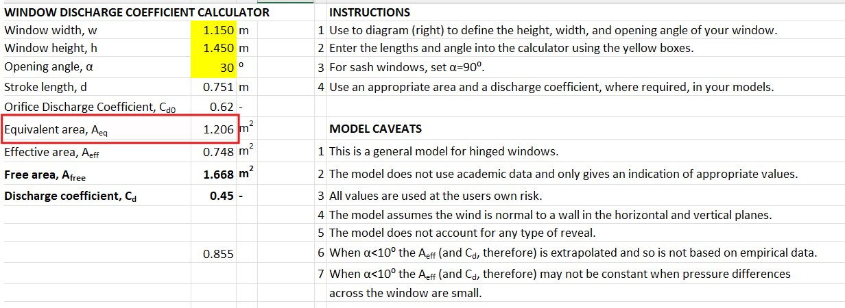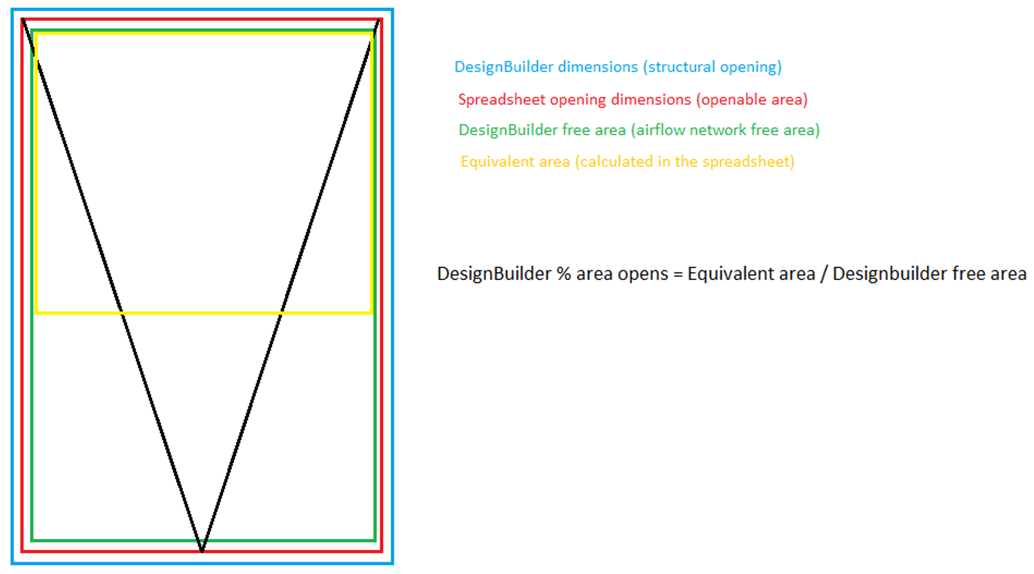 With the Spreadsheet approach, the ‘Discharge Coefficient’ in DesignBuilder should be modified to 0.62. This ensures that the DesignBuilder free area (used by the simulation engine) is correct.